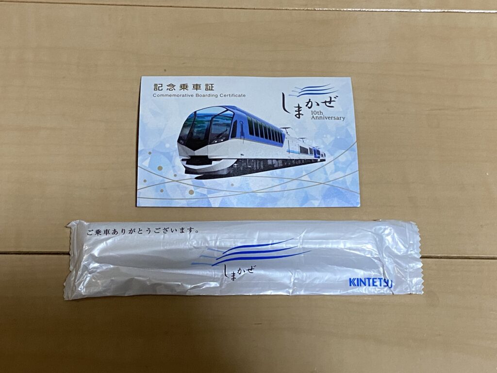 座席につくと、アテンダントの方がおしぼりと記念乗車証を届けてくれます。